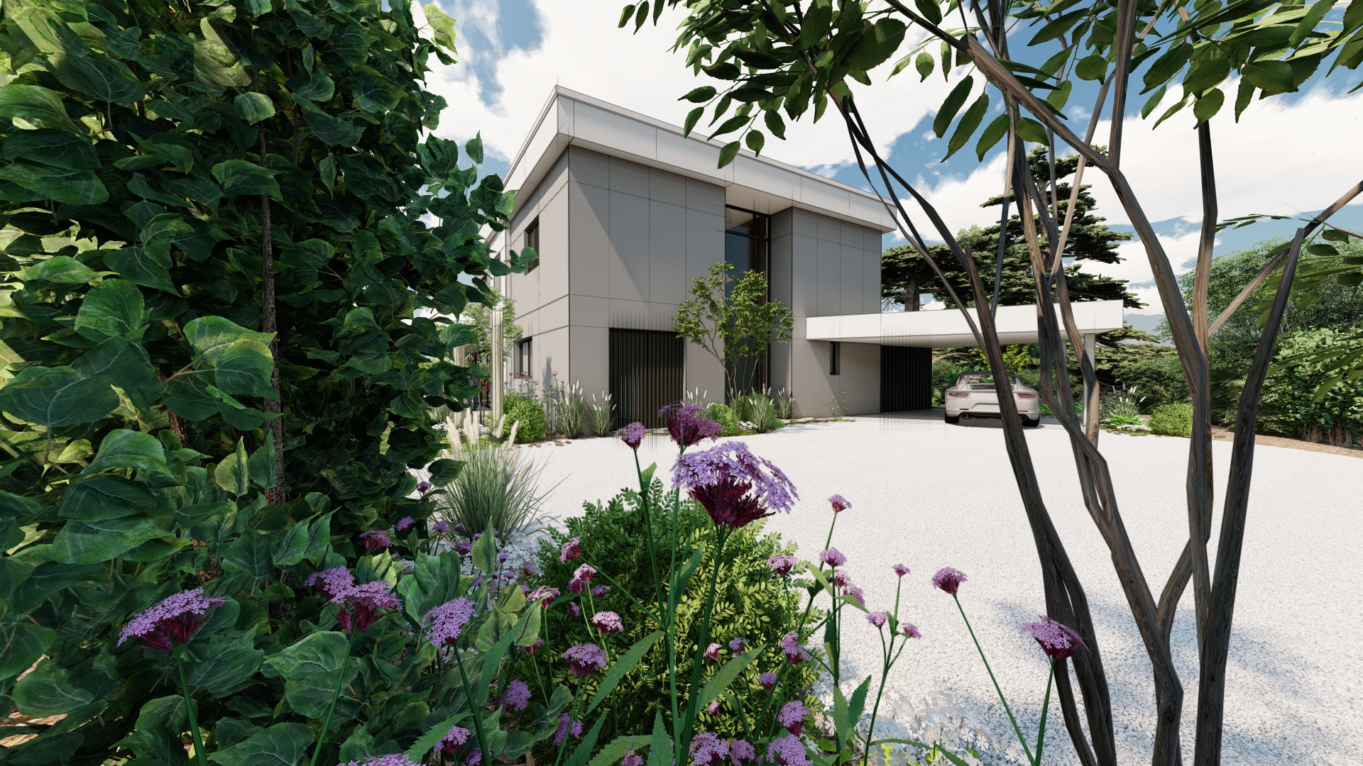 Matériaux: ossature bois, panneaux de bardage Fundermax, béton ciré